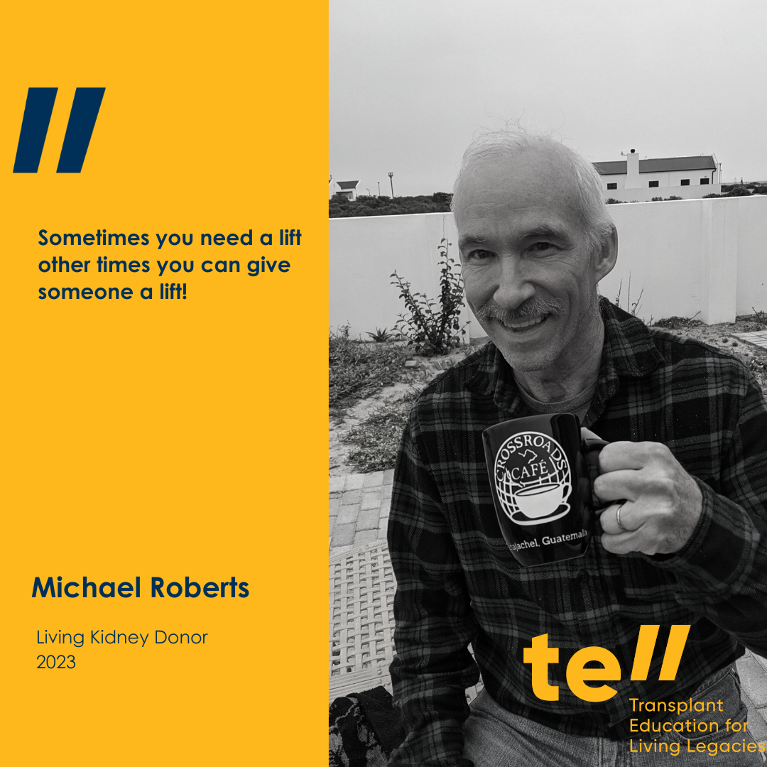 Michael Roberts, 59, from the Western Cape, was inspired by his Christian faith to donate a kidney to his wife’s school friend.